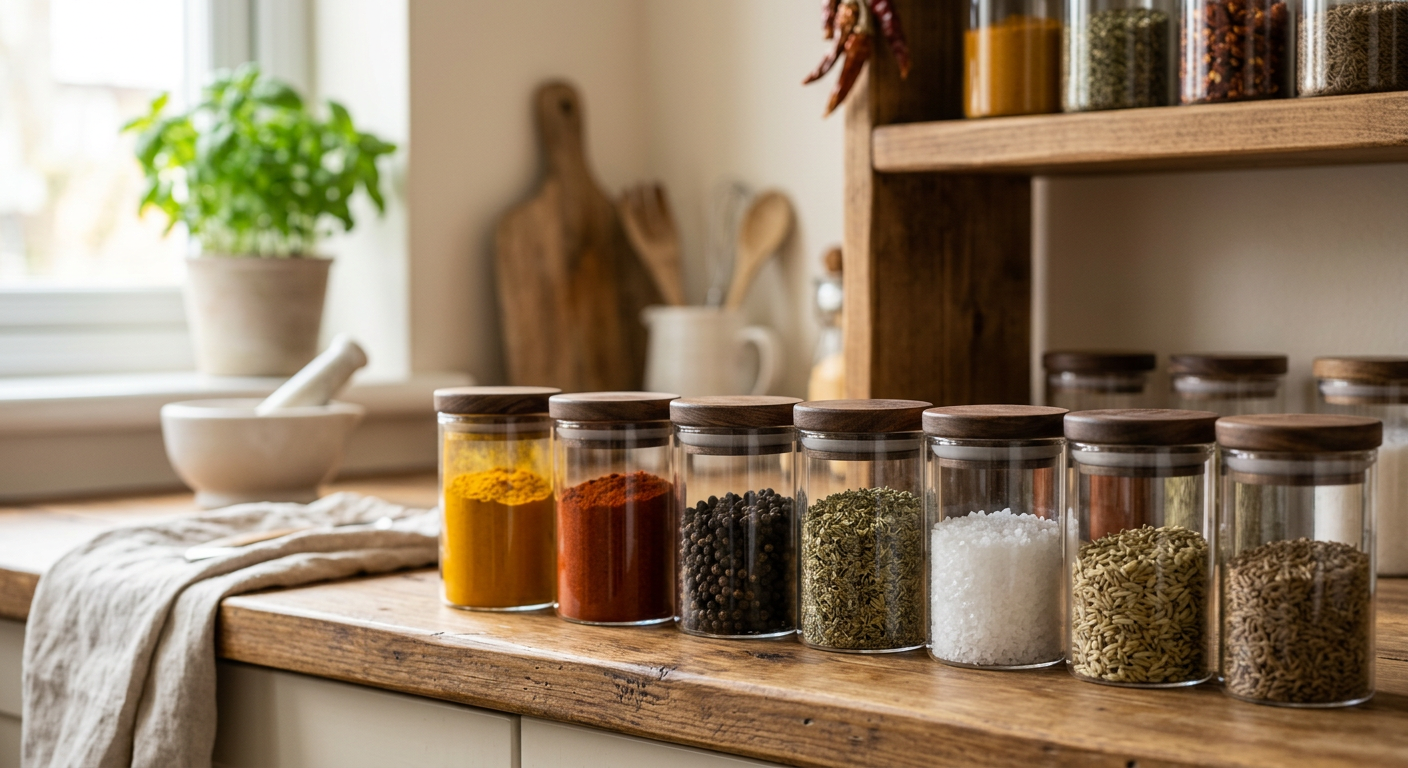 Одна из распространённых ошибок — размещение прозрачных банок на открытой полке под светом. Также неблагоприятно хранить специи вблизи плиты или пересыпать их во влажную тару. Покупка больших объёмов «про запас» тоже приводит к тому, что пряности теряют аромат раньше, чем будут использованы.